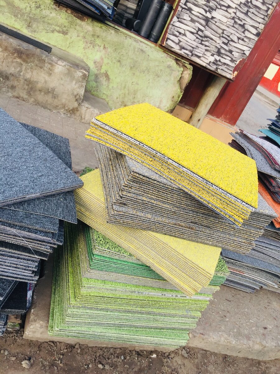 This is a modernized woolen carpet which has got fixed size of 50by50cm-square. A box contains 20pieces which covers 5square meter and its 320cedis per box. Its slip free,sound proof, fireproof and has long durability of more than 10yrs...