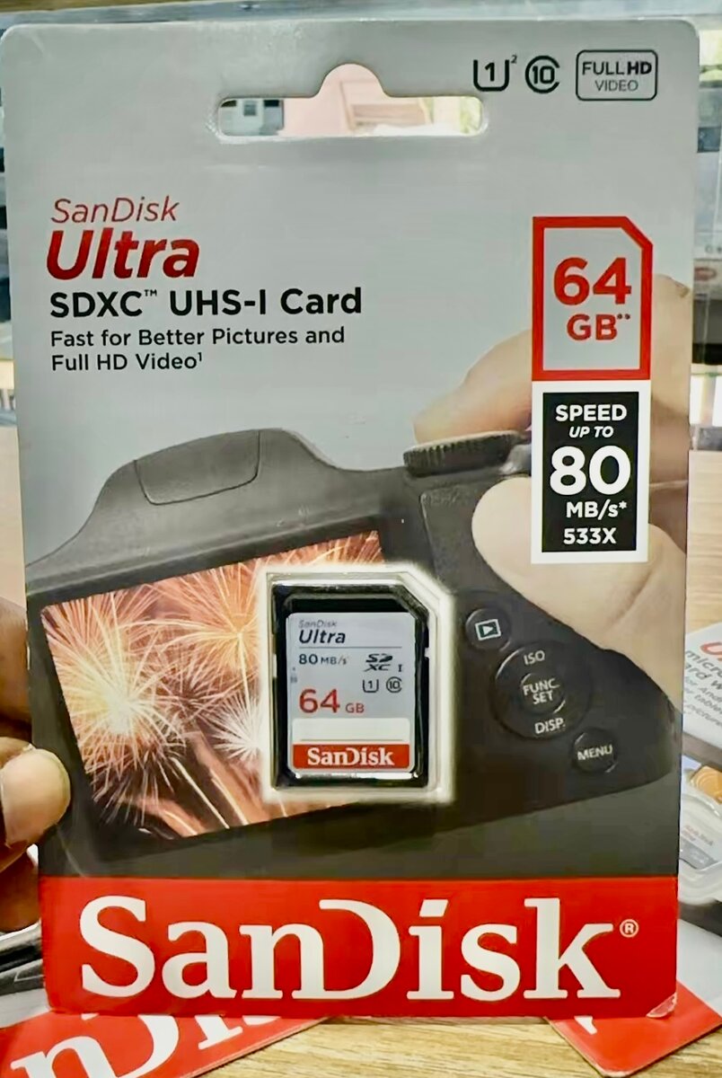 Profitez d'une performance ultra-rapide avec la carte mémoire SanDisk Ultra SDXC UHS-I de 64 Go, idéale pour capturer des photos et vidéos en Full HD. Avec une vitesse de lecture allant jusqu'à 80 Mo/s, elle garantit une efficacité optimale pour votre appareil photo.