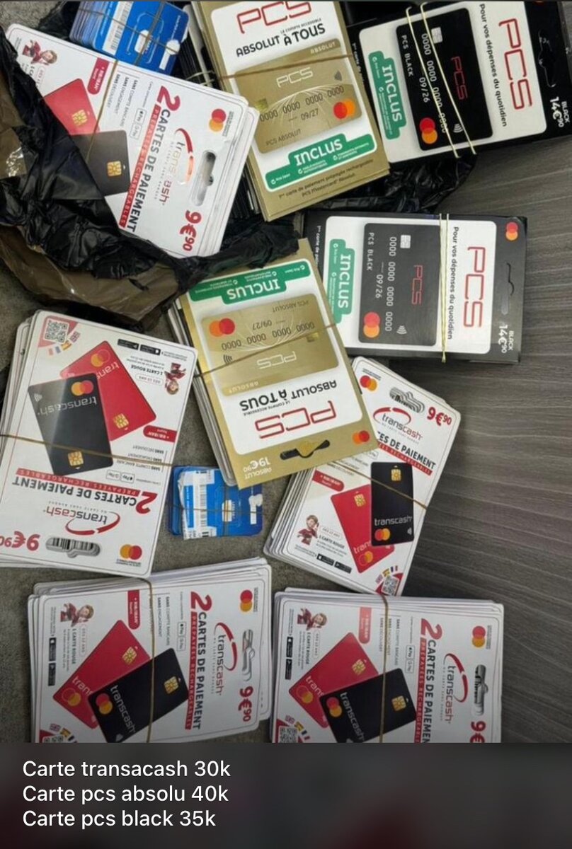 Carte transcash 30,000f Carte pcs black 35,0000f Carte pcs absolut 40,000f