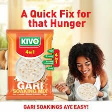 Découvrez le mélange Gari 4en1 de KIVO, parfait pour une collation rapide et délicieuse. Comprend du gari, du sucre, du lait en poudre et du glucose. Idéal pour la maison, le bureau ou les voyages. Essayez la richesse africaine à chaque bouchée.