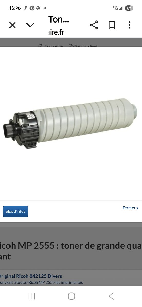 Cartouche de toner noire originale pour imprimante Ricoh MP 2555. Haute capacité pour des impressions de longue durée et de qualité professionnelle. Idéale pour bureaux et entreprises recherchant efficacité et économie.