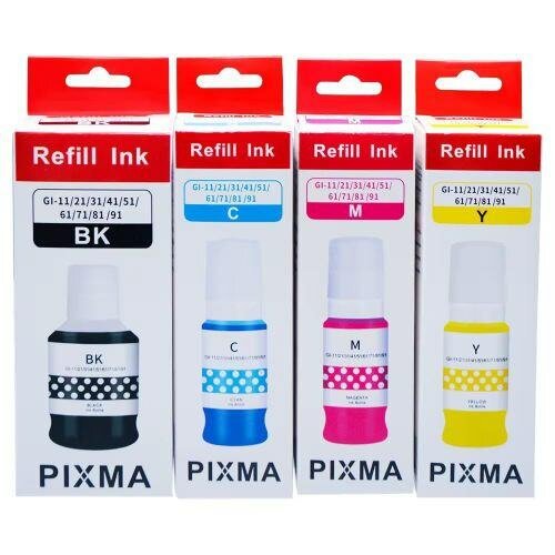 Rechargez votre imprimante Canon PIXMA avec nos cartouches d'encre compatibles GI-11. Ensemble de 4 couleurs : noir, cyan, magenta, jaune. Économique et haute qualité pour des impressions vives et durables.