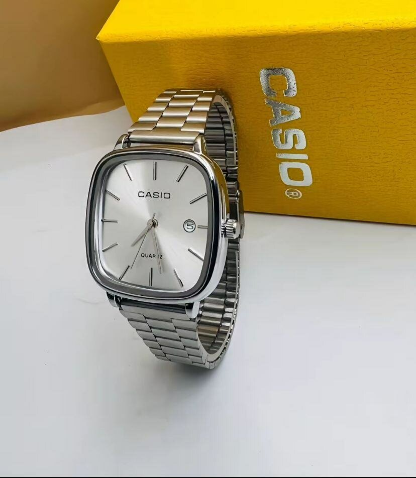 Discover timeless elegance with the Casio Silver Analog Watch. Featuring a sleek rectangular case and durable stainless steel band, this watch combines classic style with modern reliability. Perfect for any occasion, it offers precise quartz movement and a minimalist dial with date functionality. A perfect accessory for everyday wear or special events.