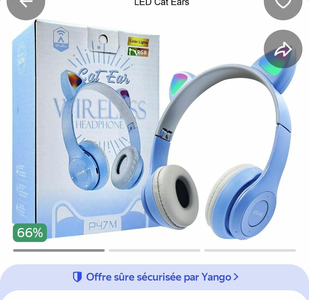 Découvrez le casque audio sans fil avec oreilles de chat LED RGB. Un style amusant et unique, parfait pour écouter votre musique préférée avec une touche d'originalité. Confortable et compatible Bluetooth.
