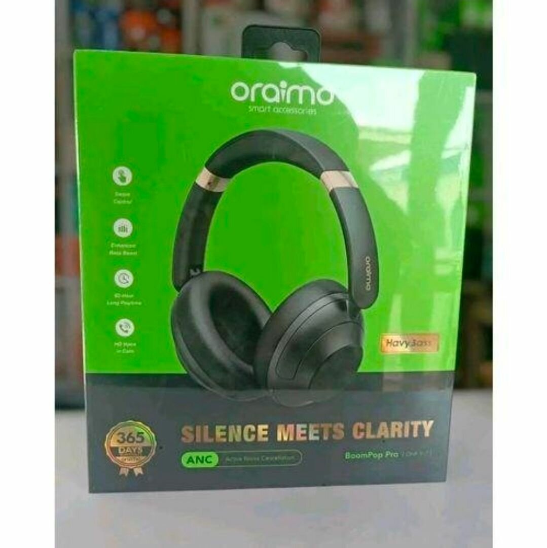 Découvrez le casque audio Oraimo BoomPop Pro avec annulation de bruit active (ANC). Profitez d'une clarté parfaite et d'une réduction du bruit ambiant pour une expérience immersive. Idéal pour les appels et la musique.