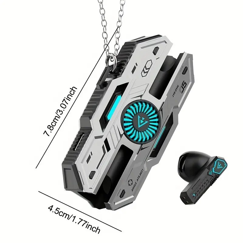 Écouteurs Bluetooth avec ventilateur intégré pour un refroidissement optimal. Design élégant et futuriste, idéal pour les amateurs de tech. Compatible avec tous les appareils Bluetooth.