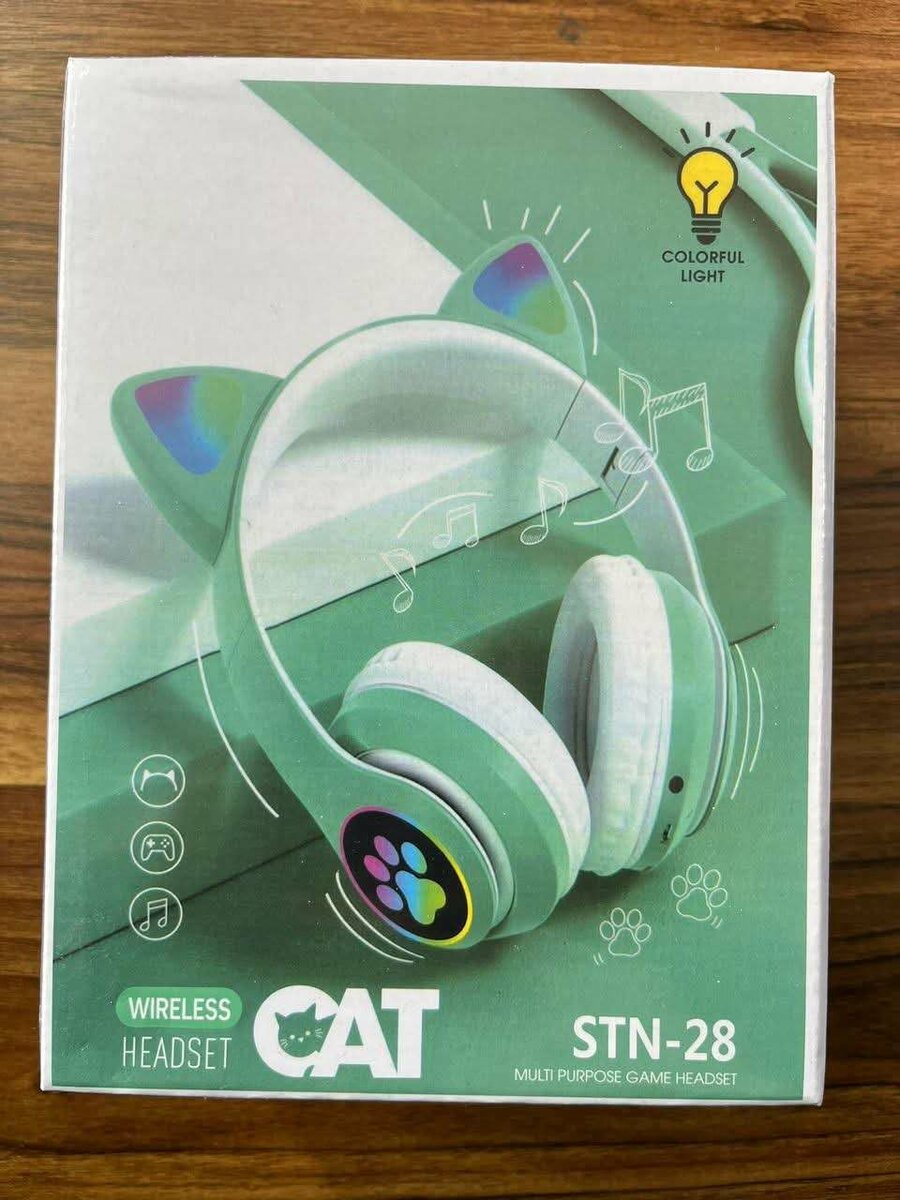Profitez d'un son immersif avec ce casque sans fil Cat. Parfait pour les gamers, il offre des lumières colorées et un design unique avec des oreilles de chat. Idéal pour le jeu ou écouter de la musique.