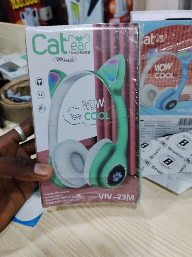 Casque audio sans fil avec design oreilles de chat, idéal pour enfants et adolescents. Son stéréo de haute qualité et style amusant. Parfait pour écouter de la musique ou jouer.