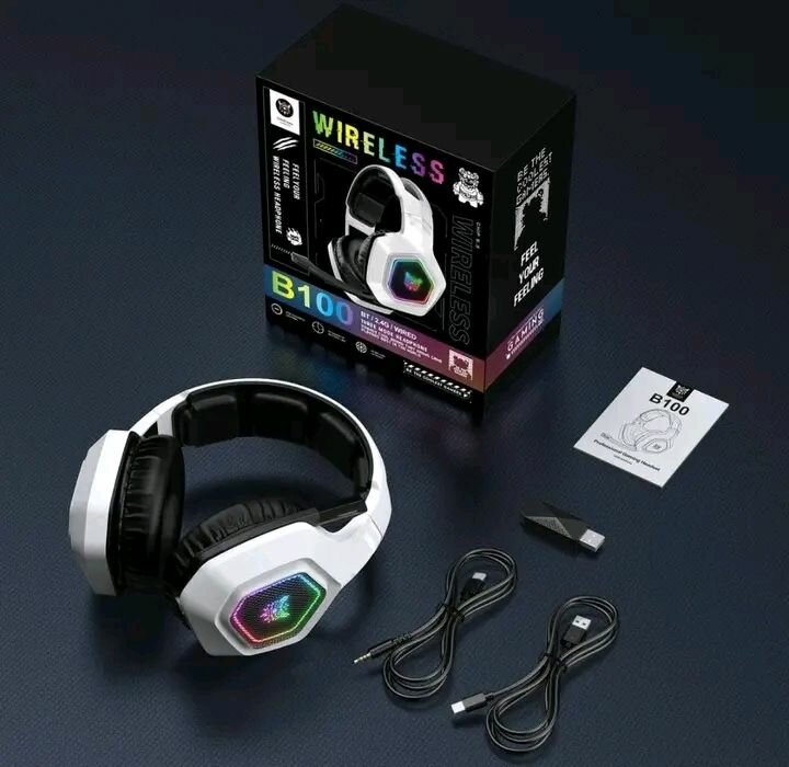 Découvrez le casque sans fil B100 avec lumières RGB pour une immersion totale dans vos jeux vidéo. Léger, confortable et doté d'une connexion stable. Parfait pour les gamers exigeants.
