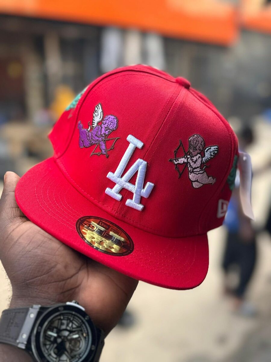 Découvrez cette casquette rouge avec motifs brodés d'anges et logo LA. Design unique pour un style urbain. Parfaite pour compléter votre look décontracté. Ajustement confortable, idéale pour toutes saisons.