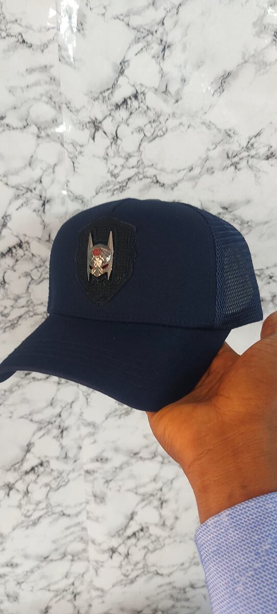 Casquette de baseball bleu marine avec un logo en forme de tête de renard. Conçue pour les amateurs de mode urbaine et les amateurs de baseball.