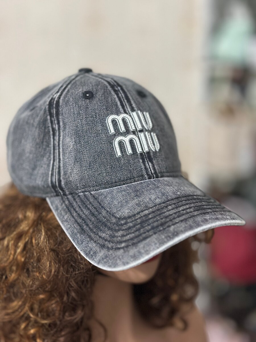 Casquette en denim Miu Miu élégante et tendance. Idéale pour compléter votre look avec une touche urbaine chic. Conçue avec une attention aux détails, parfaite pour les sorties décontractées et les événements à la mode. Un accessoire indispensable pour toute garde-robe moderne.
