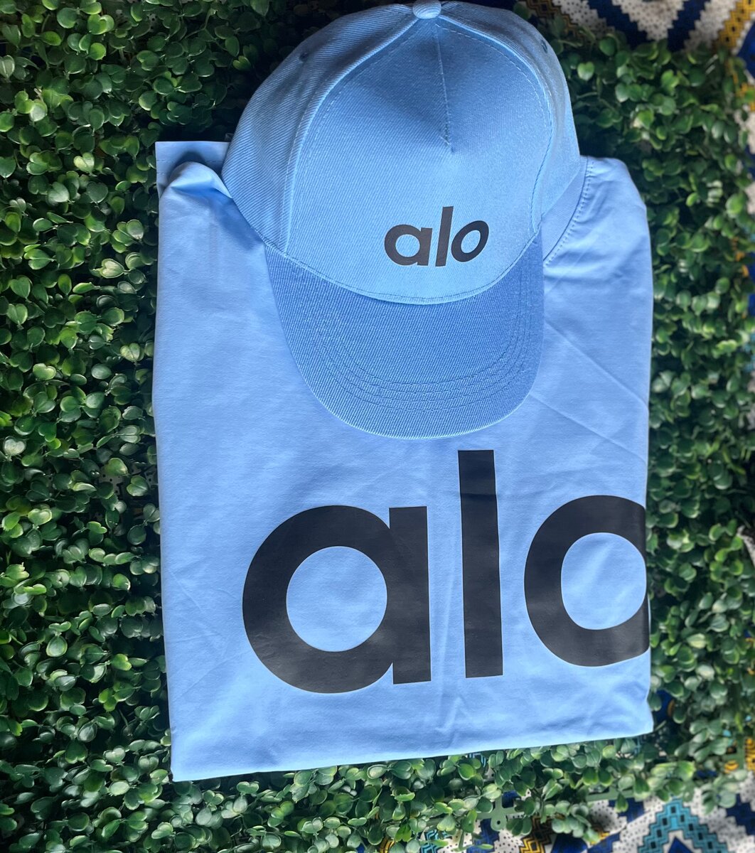 Ensemble chic casquette et t-shirt Alo, parfait pour un look décontracté. Confort en coton doux, idéal pour le quotidien. Exprimez votre style avec une touche sportive.
