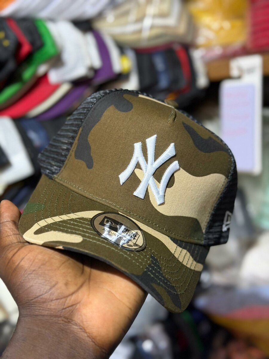 Casquette de baseball camouflage avec logo New York Yankees. Parfaite pour les amateurs de baseball et de style urbain.
