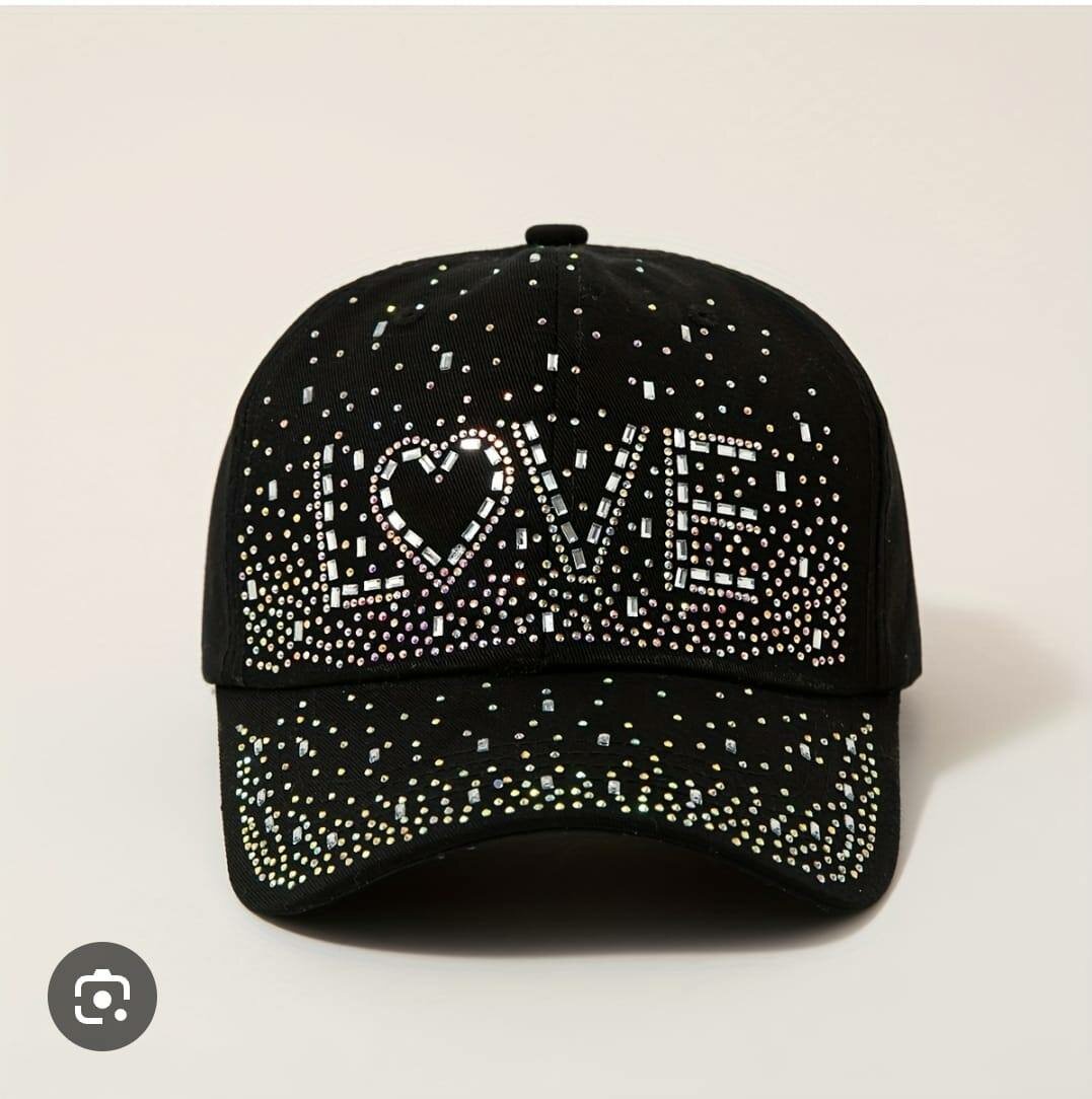 Ajoutez une touche de glamour à votre tenue avec notre casquette noire décorée de strass étincelants formant le mot 'LOVE'. Parfaite pour les sorties décontractées ou les événements spéciaux, elle se marie avec tous les styles.
