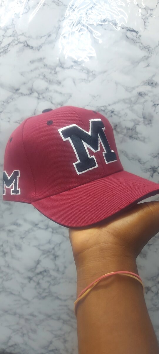 Casquette rouge avec la lettre M en noir et blanc. Parfaite pour les fans de mode et de sport. Confortable et ajustée.