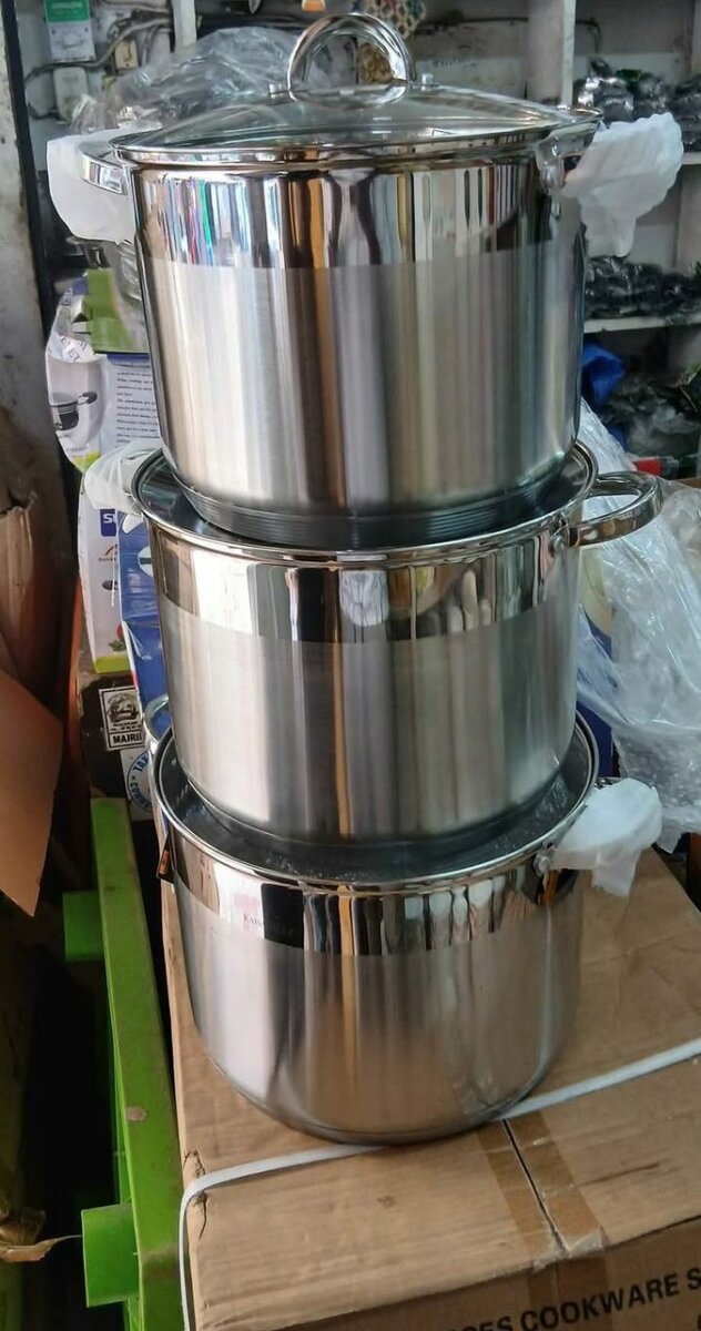 Ensemble de casseroles en acier inoxydable durable et élégant. Idéal pour toutes vos créations culinaires, compatible avec toutes les sources de chaleur. Parfait pour les cuisines modernes.