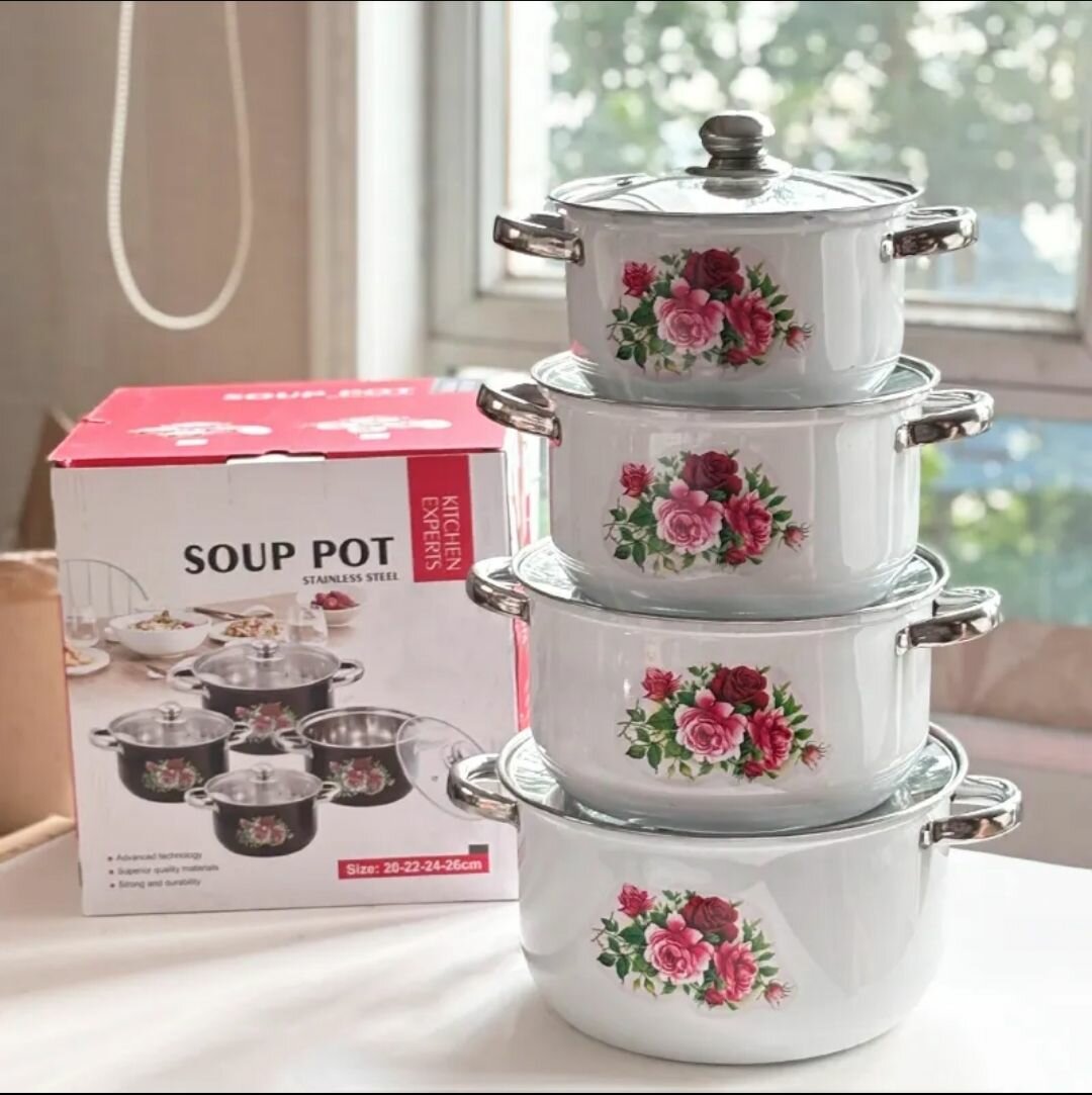 Apportez du style à votre cuisine avec cet ensemble de casseroles en acier inoxydable à motifs floraux. Idéal pour préparer des soupes et d'autres plats délicieux. Conception durable et élégante, parfait pour un usage quotidien.