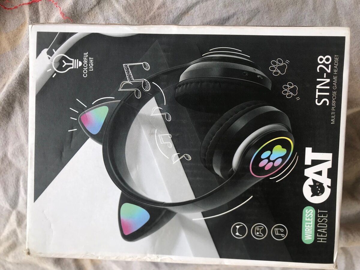 Cute Cat Ear Wireless Headphones with Led Light - Black