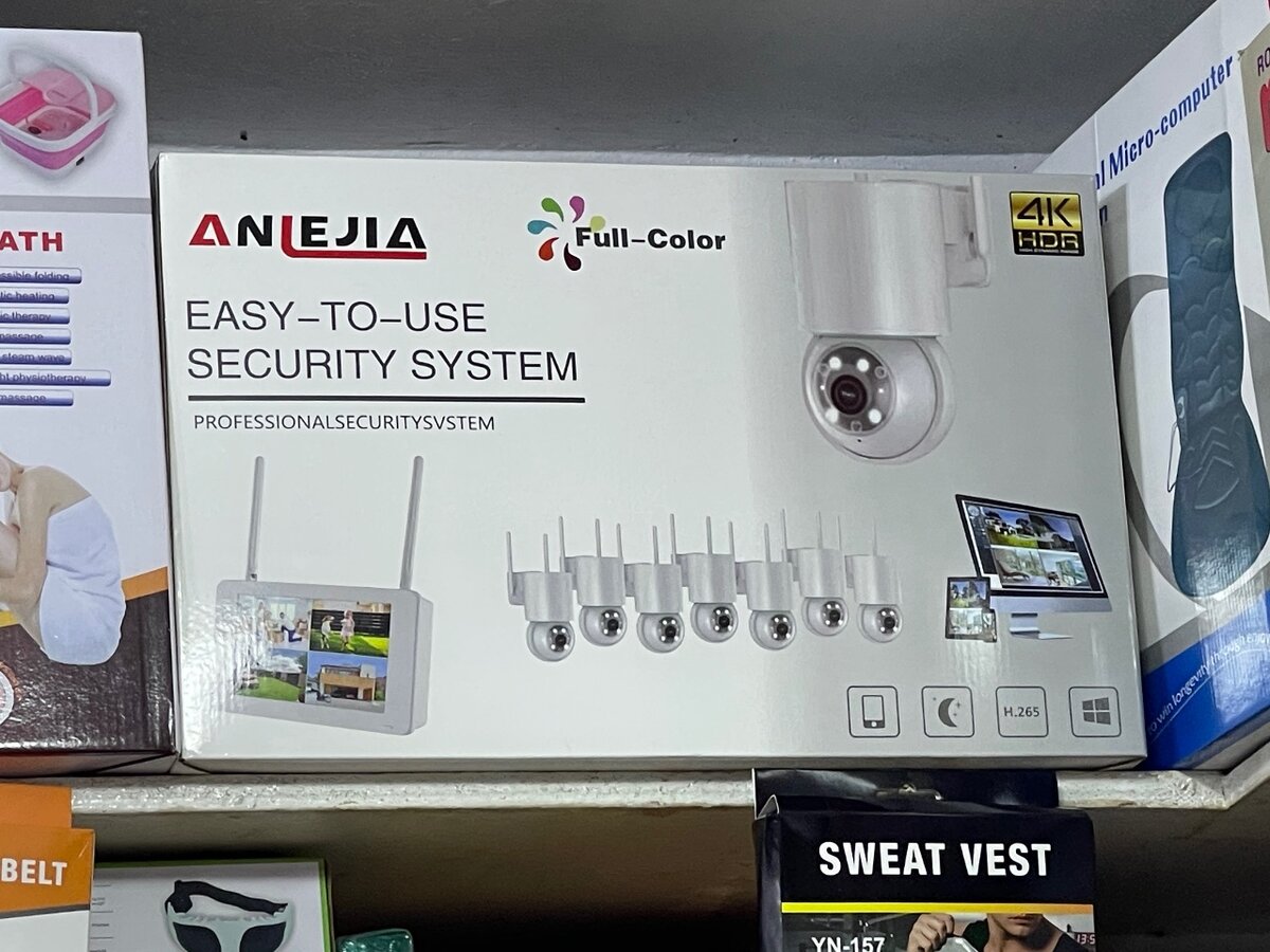 8 cctv cameras with a monitor screen showing all cameras from every location .Security made easy