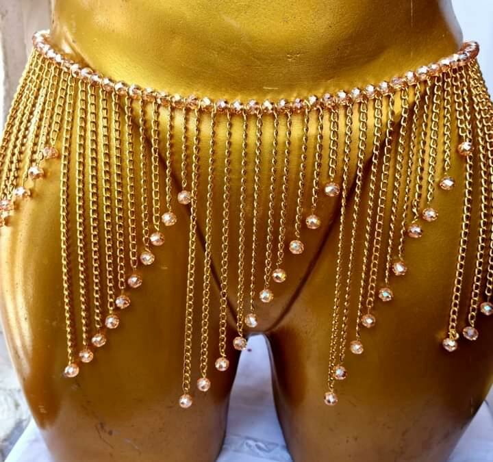 Découvrez cette ceinture bijou élégante, conçue pour sublimer votre silhouette. Composée de chaînes dorées et de perles scintillantes, elle est parfaite pour une soirée spéciale ou un rendez-vous romantique. Ajouter une touche de glamour à votre tenue avec cet accessoire unique et enchanteur. Idéale pour les femmes cherchant à élever leur style avec un bijou de corps distinctif.