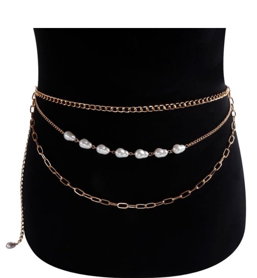 Ajoutez une touche de glamour à votre tenue avec cette ceinture chaîne dorée ornée de perles. Parfaite pour sublimer vos robes ou ensembles de soirée. Idéale pour un look sophistiqué et unique lors d'événements spéciaux.
