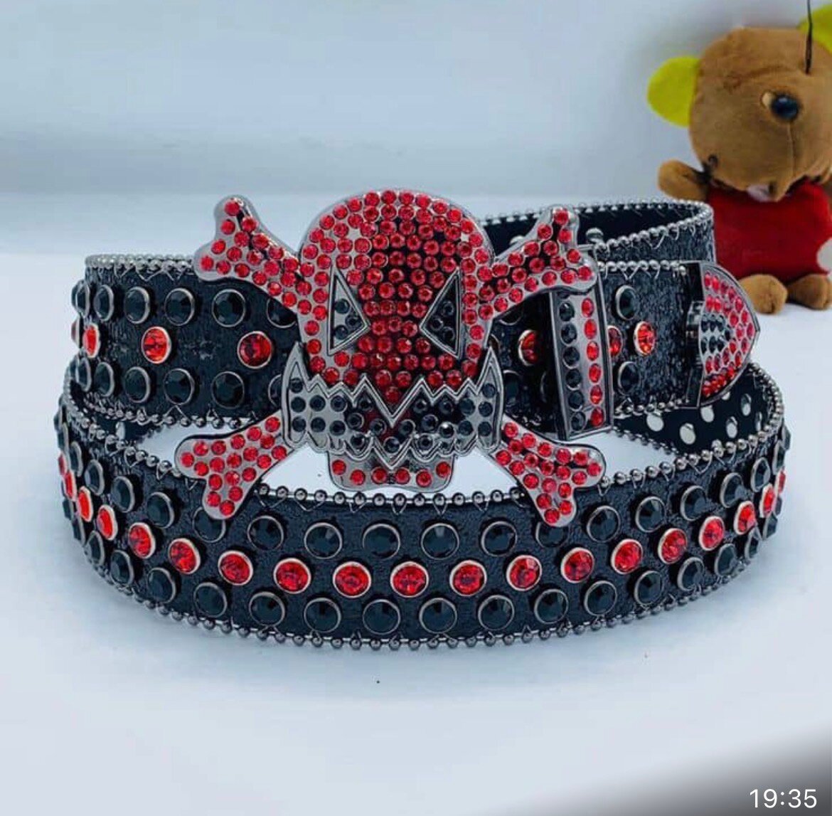 Ajoutez une touche audacieuse à votre tenue avec cette ceinture unique ornée de strass rouges et d'un motif crâne. Parfaite pour ceux qui cherchent à exprimer leur style, elle se marie bien avec des tenues décontractées ou rock. Fabriquée avec des matériaux de qualité pour une durabilité exceptionnelle.