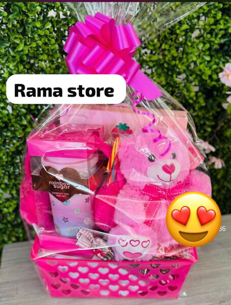 Panier Cadeau Rose avec Ours et Gourmandises