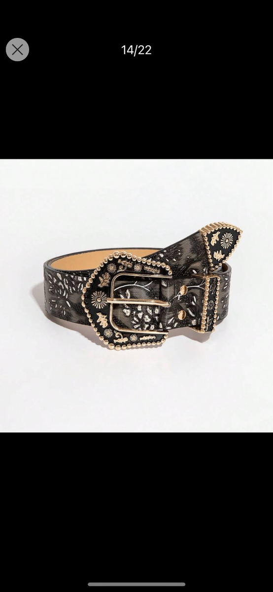 Élégante ceinture en cuir avec motifs brodés. Idéale pour rehausser vos tenues avec une touche de style unique et raffinée. Parfaite pour le quotidien ou les occasions spéciales.