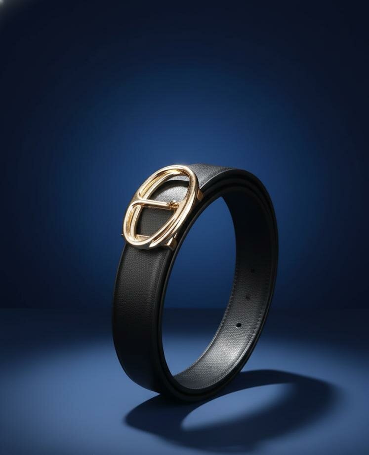 Ajoutez une touche de sophistication à votre tenue avec cette ceinture en cuir noir de haute qualité. Dotée d'une boucle dorée élégante, elle est l'accessoire parfait pour les occasions formelles ou quotidiennes. Son design intemporel garantit un ajustement parfait et un look raffiné.