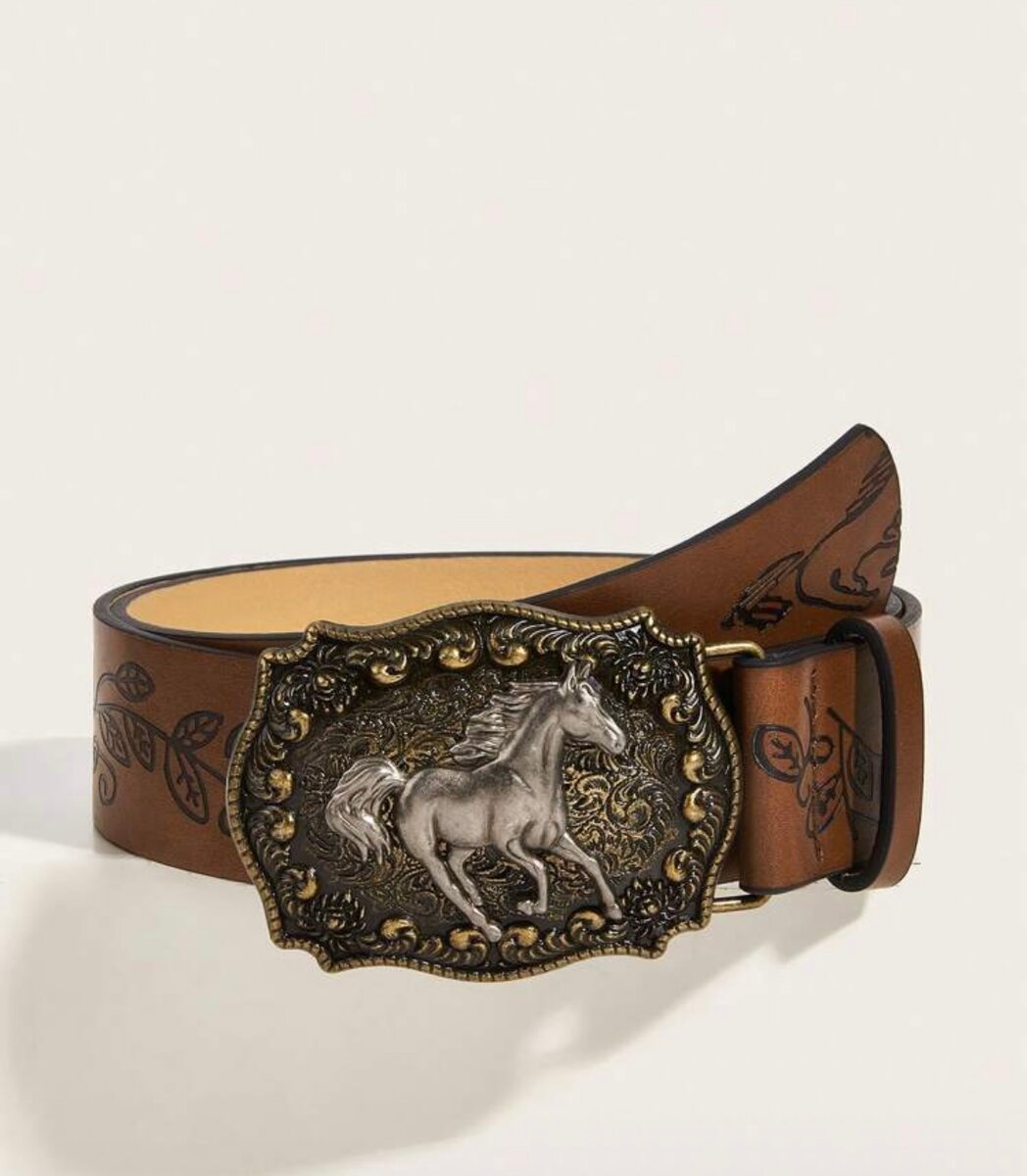 Découvrez la ceinture en cuir gravée avec boucle cheval, parfaite pour un style western unique. Fabriquée en cuir de haute qualité, elle est ornée de motifs gravés et d'une boucle décorative robuste représentant un cheval. Idéale pour ajouter une touche d'élégance et de caractère à vos tenues. Convient aussi bien pour les occasions formelles que décontractées, c'est un accessoire indispensable pour tous les amateurs de mode.