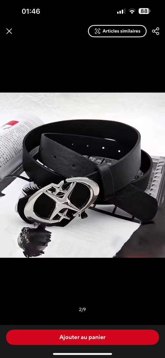 Ceinture élégante en cuir noir avec une boucle moderne argentée. Parfaite pour compléter n'importe quelle tenue formelle ou décontractée. Fabriquée avec des matériaux de haute qualité pour assurer durabilité et style. Idéale pour les hommes qui cherchent à ajouter une touche de sophistication à leur garde-robe.