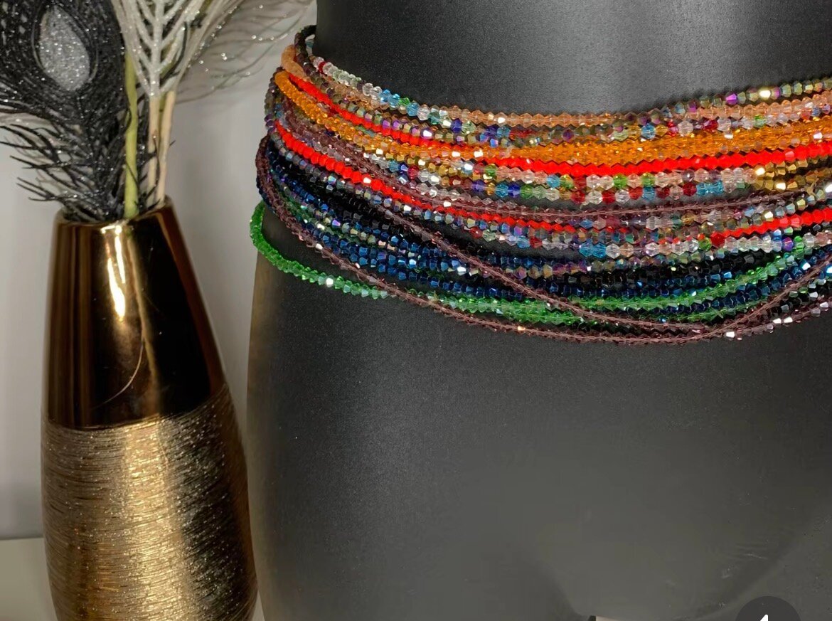 Ajoutez une touche de couleur à votre tenue avec cette ceinture en perles multicolores. Idéale pour les sorties estivales et les événements festifs, elle s'adapte à toutes les tailles et styles. Élégante et originale, elle se porte aussi bien sur une robe que sur un pantalon. C'est l'accessoire parfait pour exprimer votre personnalité unique.