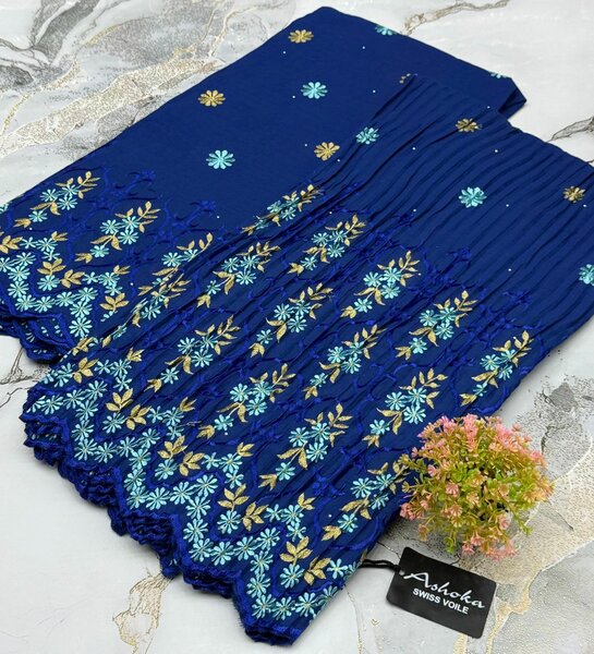 Foulard en crêpe à broderie anglaise