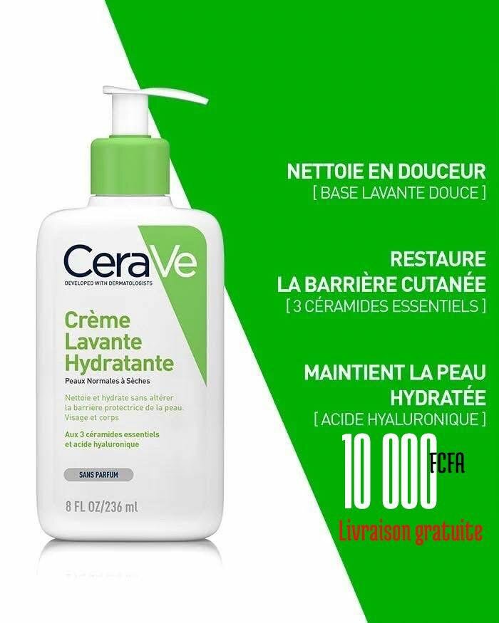 Nettoyez et hydratez votre peau avec la Crème Lavante Hydratante CeraVe. Sa formule enrichie aux céramides essentiels et à l'acide hyaluronique restaure efficacement la barrière cutanée. Idéale pour les peaux normales à sèches. Profitez d'une peau douce et saine dès le premier lavage.