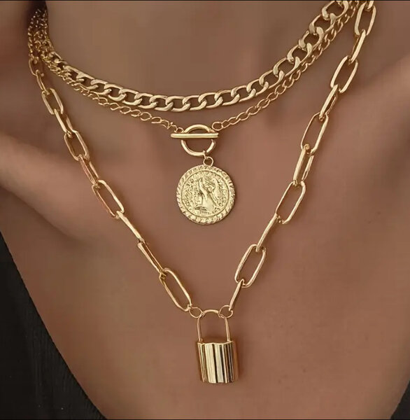 Collier Triple Chaîne Doré
