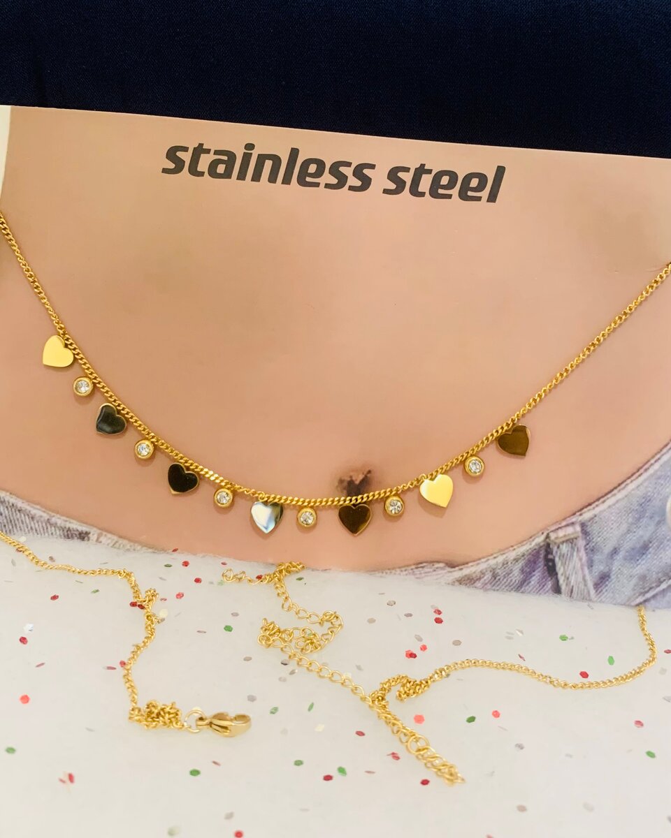 Sublimez votre look avec cette chaîne au rein en acier inoxydable orné de pendentifs cœurs élégants. Parfait pour toutes les occasions, il ajoute une touche sophistiquée, idéale pour un usage au quotidien.