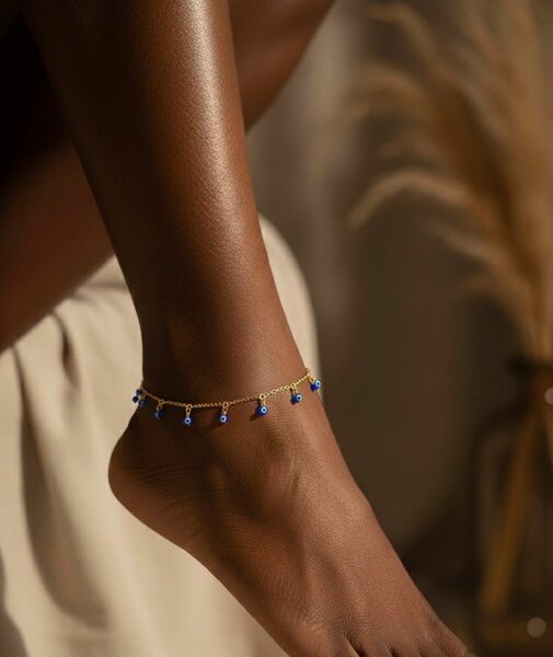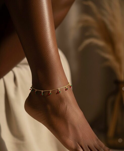 Élégante chaîne de cheville en or, parfaite pour sublimer votre tenue d'été. Conçue pour les femmes qui aiment les bijoux discrets et raffinés.