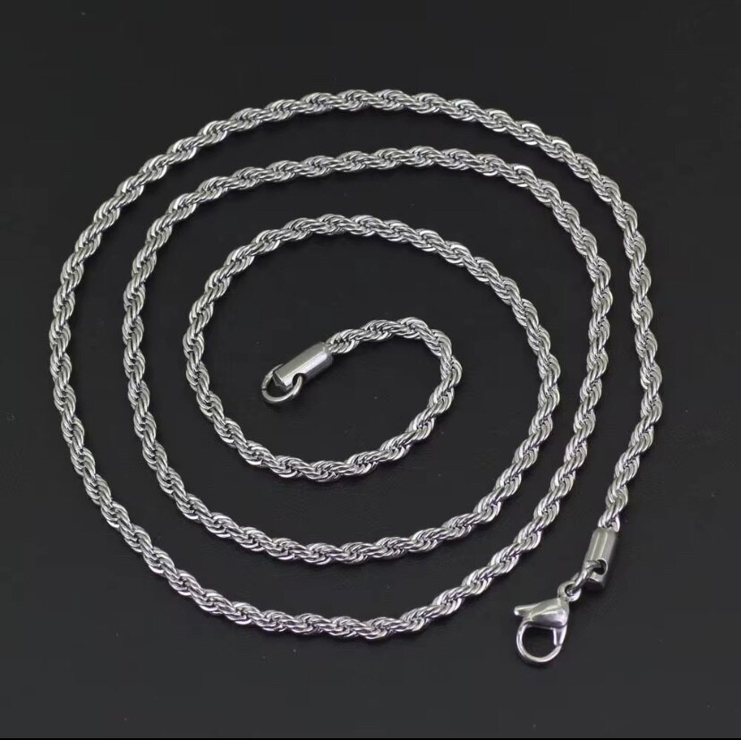 Chaîne en acier inoxydable élégante et durable, idéale pour un style quotidien ou pour des occasions spéciales. Son design tressé ajoute une touche d'élégance moderne. Parfaite pour être portée seule ou avec un pendentif. Un excellent choix pour ceux qui cherchent à rehausser leur mode avec un accessoire polyvalent.