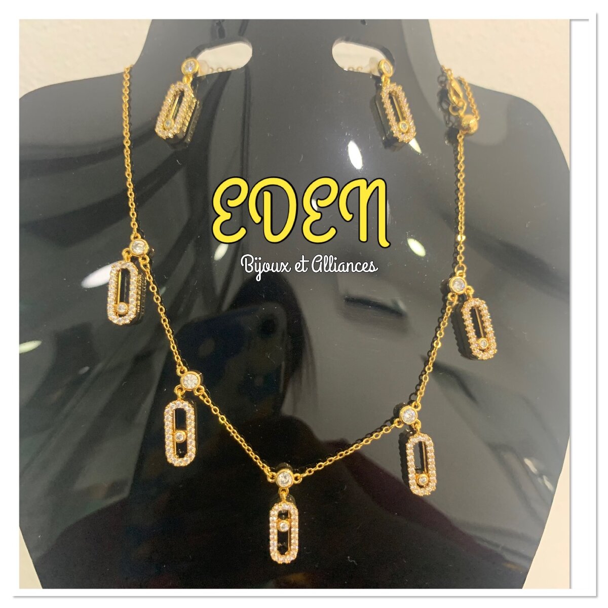 Chaîne Messika ras de cou plaqué or avec ses boucles doreilles assorties