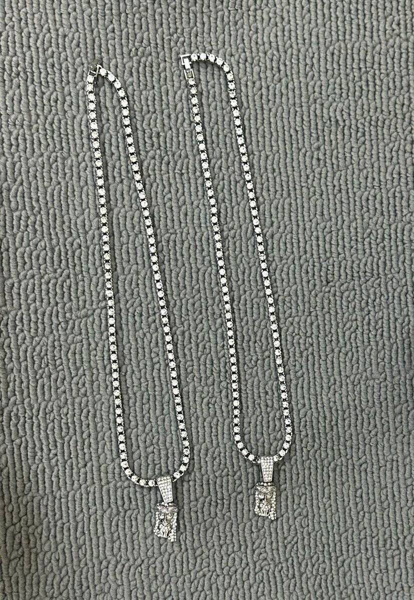 Élégant collier avec un pendentif étincelant de diamants artificiels. Parfait pour ajouter une touche de luxe à n'importe quelle tenue, que ce soit pour des occasions spéciales ou un usage quotidien. Idéal pour ceux qui aiment les accessoires raffinés et brillants.