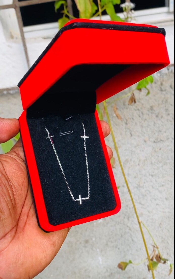 Chaîne simple avec imprimé croix en argent blanc 925 importé