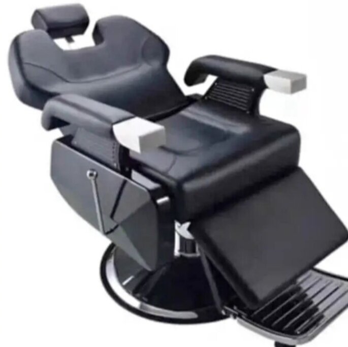 Chaise de barbier hydraulique noir pour salons de coiffure et barbiers. Confortable et réglable, idéale pour les professionnels.