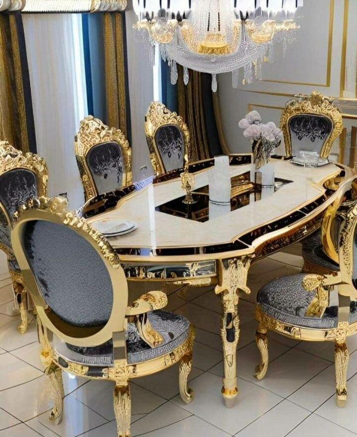Découvrez cette chaise de salle à manger design, au style baroque et au doré élégant. Parfaite pour les intérieurs luxueux, elle combine confort et esthétique pour des dîners raffinés.