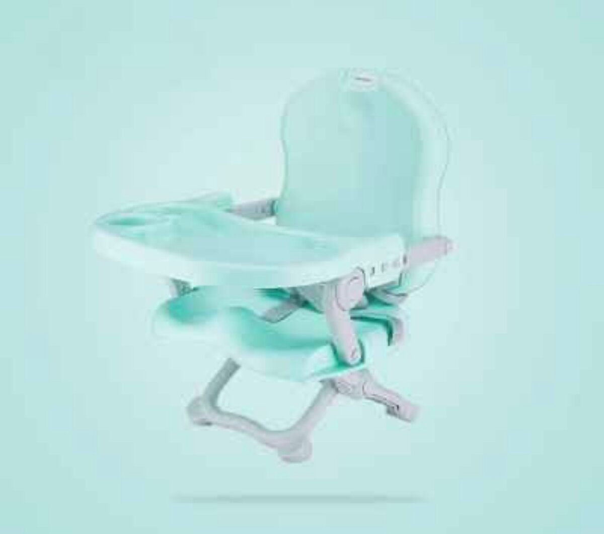 Chaise haute bébé pliable et réglable en hauteur, idéale pour les repas en famille. Conception compacte et facile à nettoyer.