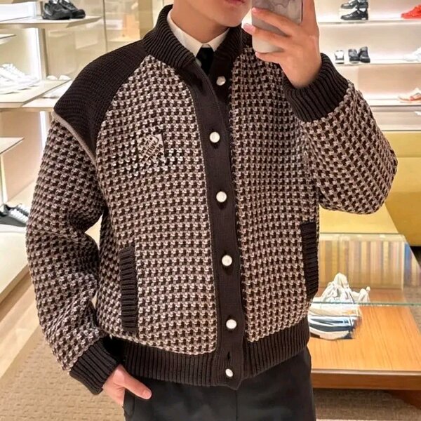 Cardigan homme marron et blanc