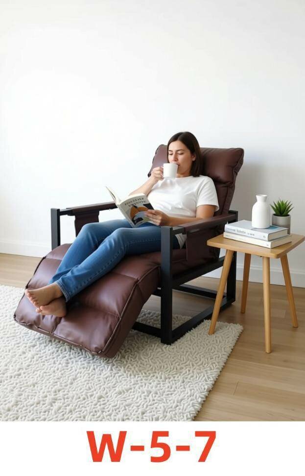 Détendez-vous avec style sur cette chaise longue en cuir élégante, parfaite pour la lecture ou le repos. Idéale pour tout espace de vie moderne.