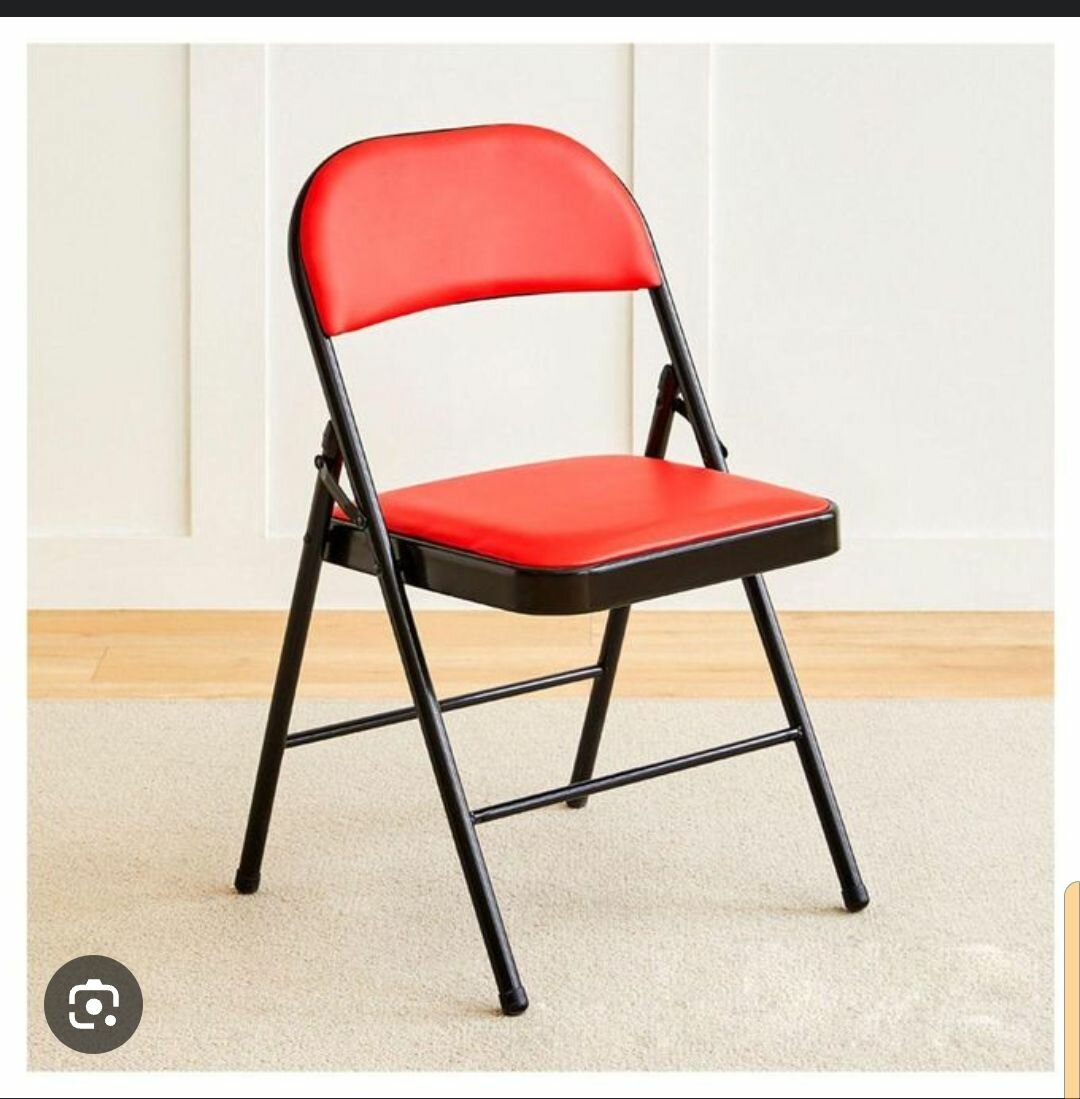 Chaise pliante robuste avec siège et dossier rouge. Conçue pour une utilisation pratique et facile à ranger. Idéale pour les événements, les salles polyvalentes ou comme siège supplémentaire à la maison.
