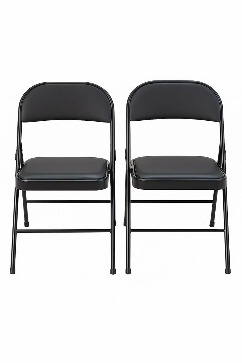 Lot de 2 chaises pliantes confortables et élégantes. Idéales pour des réunions, événements ou à la maison. Structure robuste en métal, siège rembourré pour un confort optimal. Facile à ranger grâce à leur design pliable. Parfaites pour économiser de l'espace.