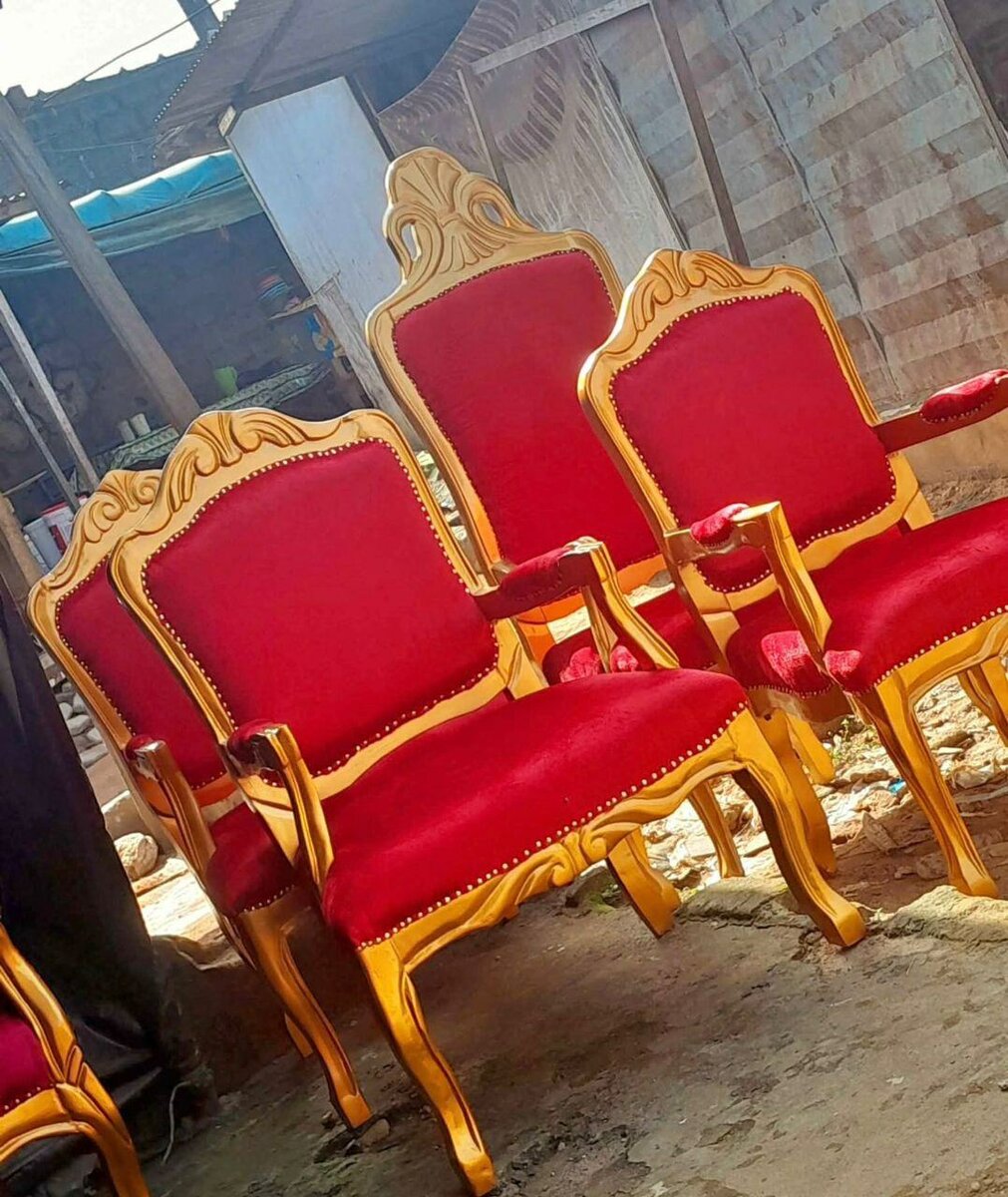 Élégantes chaises royales avec cadre doré et rembourrage en velours rouge. Parfaites pour salons luxueux, événements spéciaux ou décors de château. Confort ultime et style intemporel.